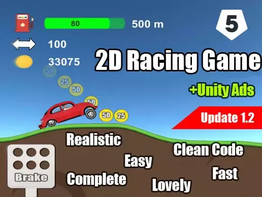 With this easy to use kit, you can easily create your own 2d car game with lots of great features and easy to use script and tools.