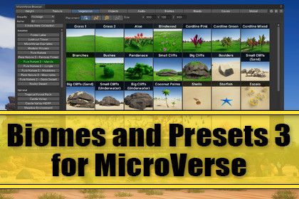 Important: This asset contains Biome and Preset configurations for the MicroVerse Content Browser. It does NOT contain any of the assets that are supported, nor does it contain MicroVerse itself.