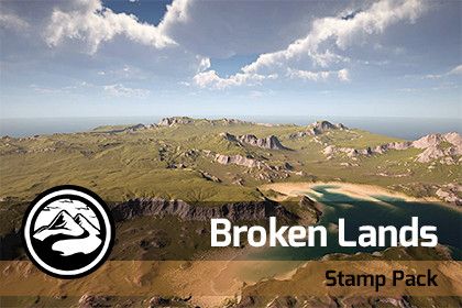 Broken Lands - Stamp Pack is a collection of 10 high-quality heightmap images.