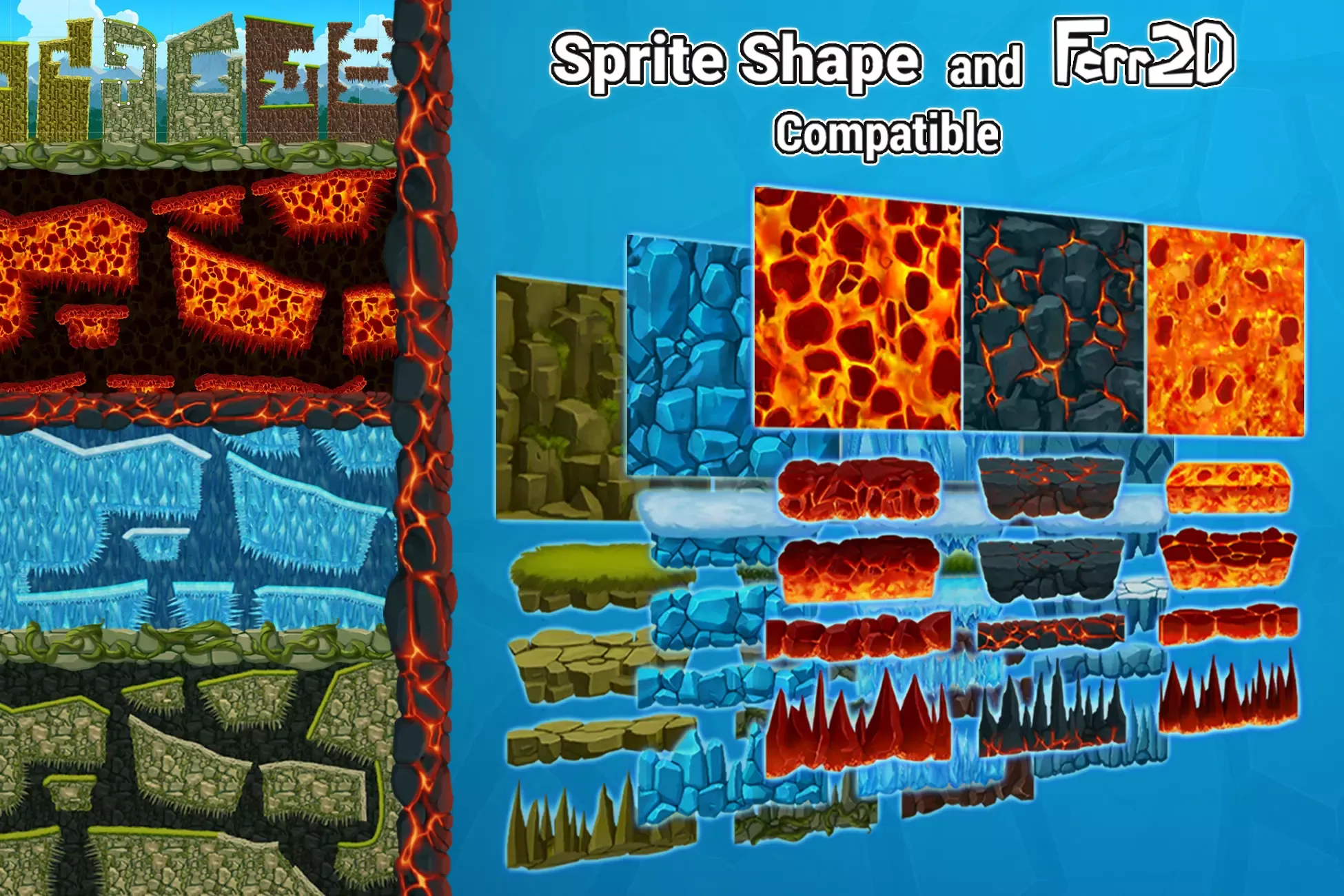 2D SpriteShape/Ferr2D Textures Bundle - Rock/Lava/Ice