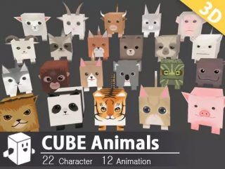Cube-Animal_Pack : 22 Characters (1024×1024 Textures) 12 Animations