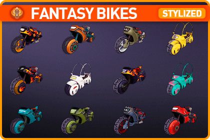 Fantasy Cartoon Bikes with stylized textures that are ready to be dropped into any game project, perfect for stylized and fantasy environments.