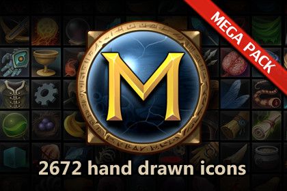 A set of 2672 hand drawn Fantasy Icons Megapack. All icons are of a high quality and implemented in a professional level. A good choice for any game in the fantasy style.