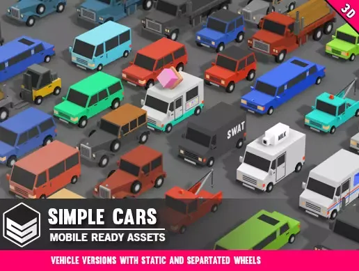 Container, Family Van, Ice cream truck, Limo, Mail Truck, Milk Truck, Regular Truck, Sedan, Small 4x4, Station Wagon, Swat Truck, Tow Truck, Forklift, Big-rig, Classic car and Logging truck.