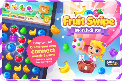 Do you want to create your own swipe match-3 games in the spirit of the classics of the genre? Whether you are a small independent developer or a big studio, creating your first game or a commercial one, Fruit Swipe Match 3 Kit will help you bring your dreams to fruition.