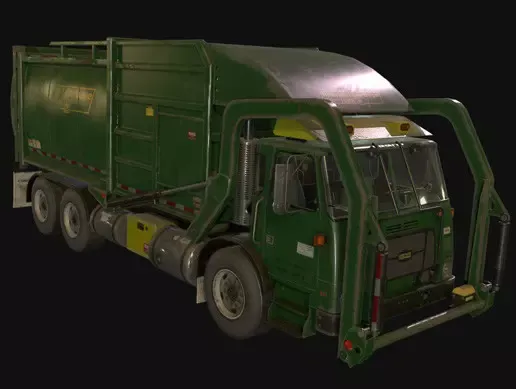 Various parts of the garbage truck are rigged with bones and have animator controls included, allowing you to move each part separate from each other. The interior is also modeled as well.