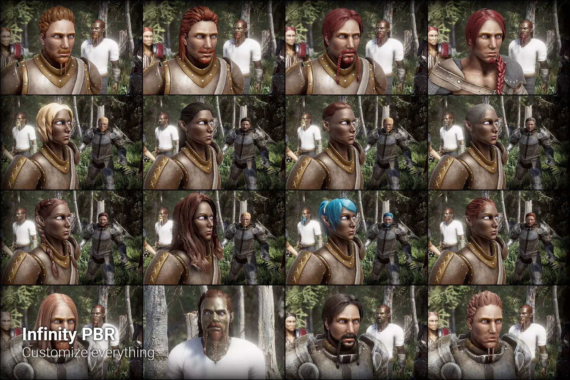 This package contains hair, beards, and mustaches for the Human, Elf, and Half-Orc character packs from Infinity PBR. Includes dozens of models ready to be combined and expand the looks you can achive with the characters.