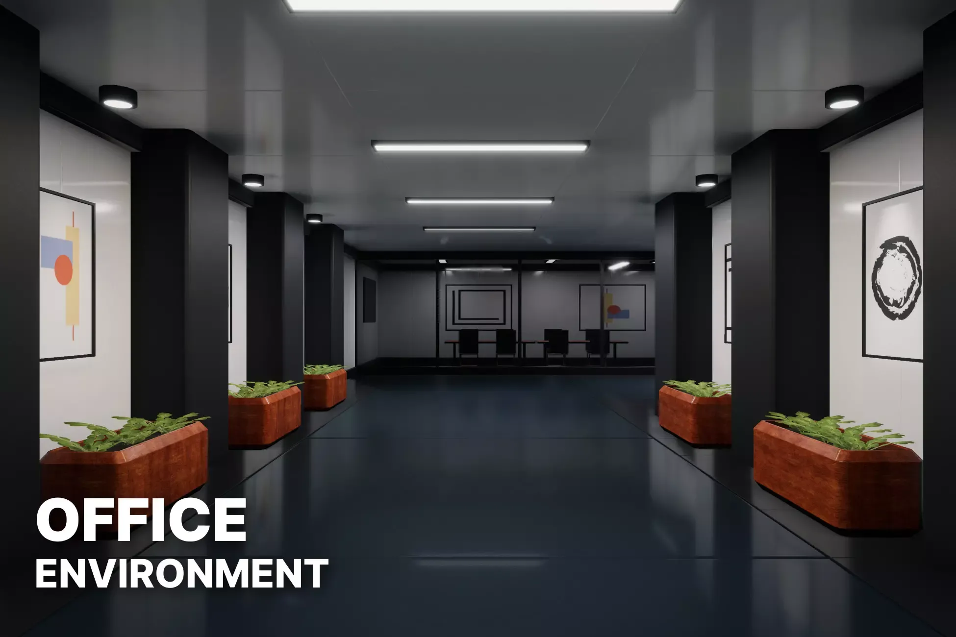 This package includes all you need to get started, creating your own custom office with the High Definition Render Pipeline (HDRP) in Unity. It contains a set of curated 3D models like modular walls, floors, pillars and ceilings as well as a set of props like desks, chairs, flower pots, etc.