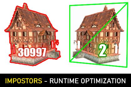 - At a close distance it's quite easy to distinguish impostor from the original object, so they must be used at most at 10% of camera screen size.