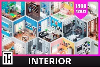 Interior is a package of low-polygon 3D models optimized for game engines, consisting of 28 prepared rooms such as – hallway, living room, bedroom, kitchen, bathroom, game room, study and much more!