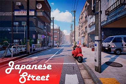 This asset is an ordinary Japanese street with a narrow road, small cozy houses and endless flower pots.