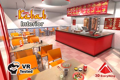 Interior of a kebab restaurant. 68 models of furniture and objects that could be found in a real kebab restaurant.There are two kebab machines with two different types of meat, a food display, an extractor, knifes, a cooler and a till. There are also different kinds of food like pita bread, falafel, a pizza, sauces, vegetables and many other ones. All the models are low-poly to be used in games and applications. Our latest update has been tested for VR