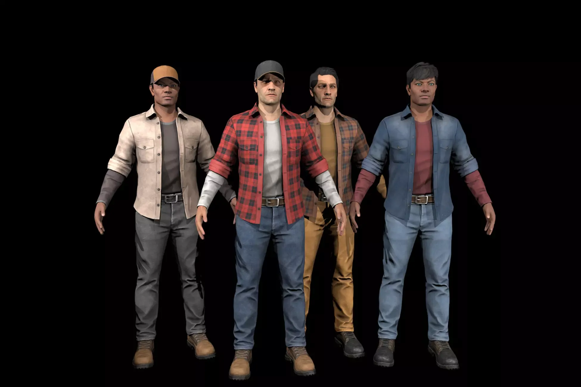 Man - 4, is a A low-poly character in jeans and shirts with rolled up sleeves. The character is fully modular and equipped with Humanoid skeleton.