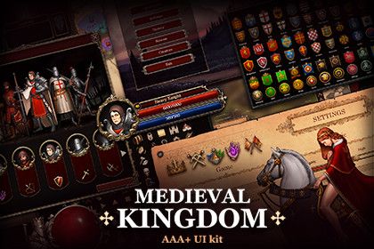 A large pack in the the Medieval Kingdom style includes a great number of drawings, icons, UI elements, a full world map and icons of civilizations. It will allow you create a game, or can be a great addition to your 3D game. You can also make your own animation of kings for dialogues, create unique panels and windows for 4k games. Two unique skins are available: Classic (cool color palette) and White gold (warm color palette).