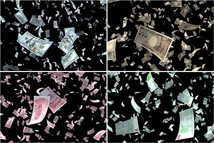 Money Particles - US Dollar, CNY, JPY and Euro