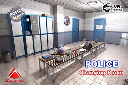 Interior of a changing room of a police station. There is furniture like benches, lockers and different objects that could be found in a real changing room such as towels, boots and police objects like a gun, a radio,a baton, handcuffs,a helmet and police caps. There are also other models like a dustbin, a bag, informative papers.....All the models are low-poly to be used in games and applications. Our latest update has been tested for VR