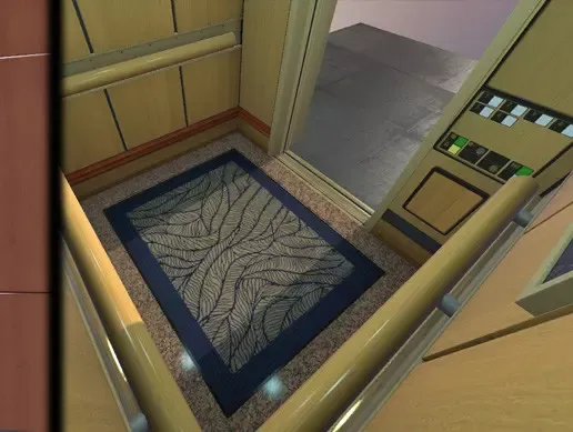 The triangle/vert counts are: Elevator Boxcar 7550 triangles, 10004 vertices Floor Frame 386 triangles, 490 vertices Railing Support Beams 5500 triangles, 8000 vertices