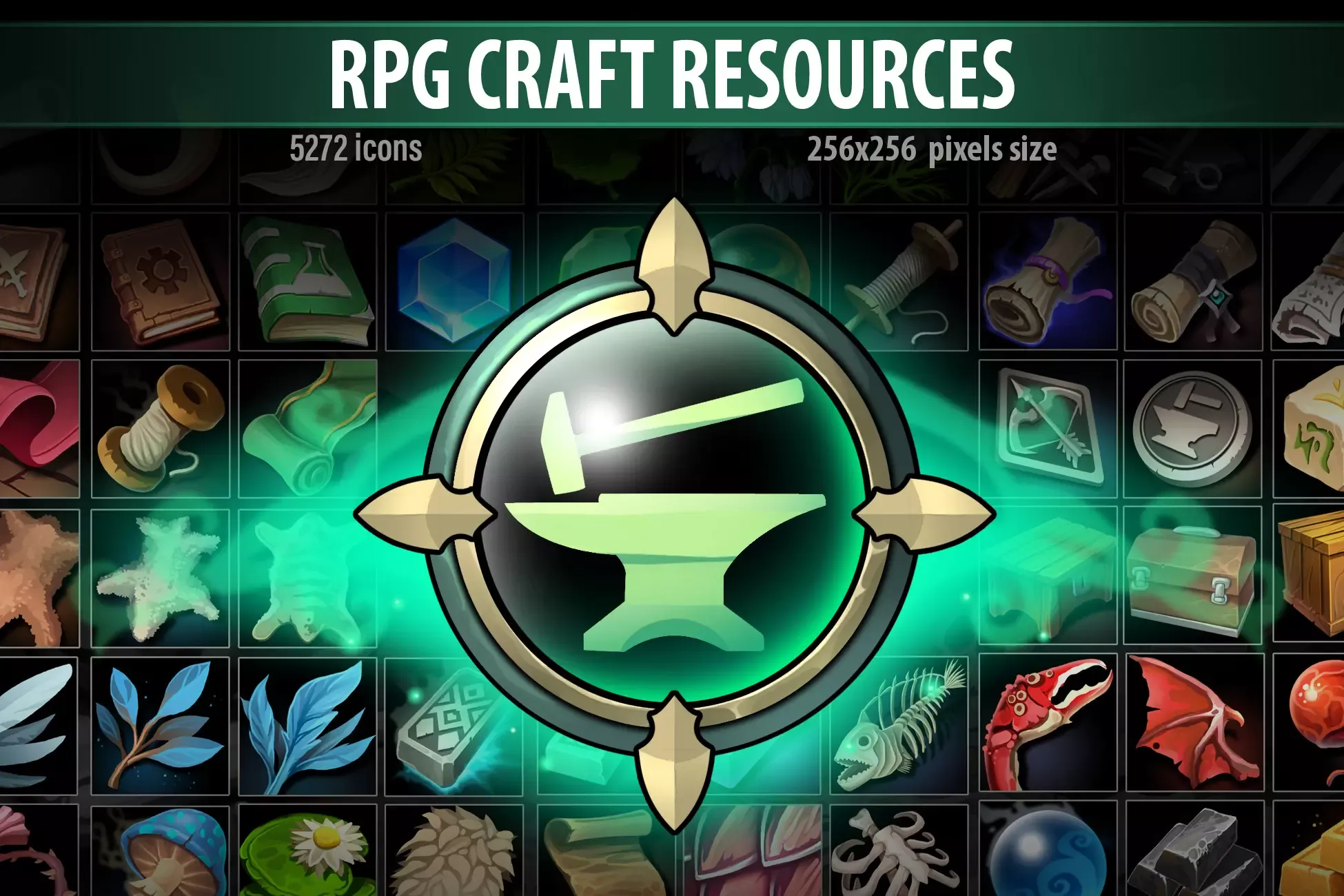 The set includes 5272 craft resource icons. There are transparent PNG. 256×256 pixels size.