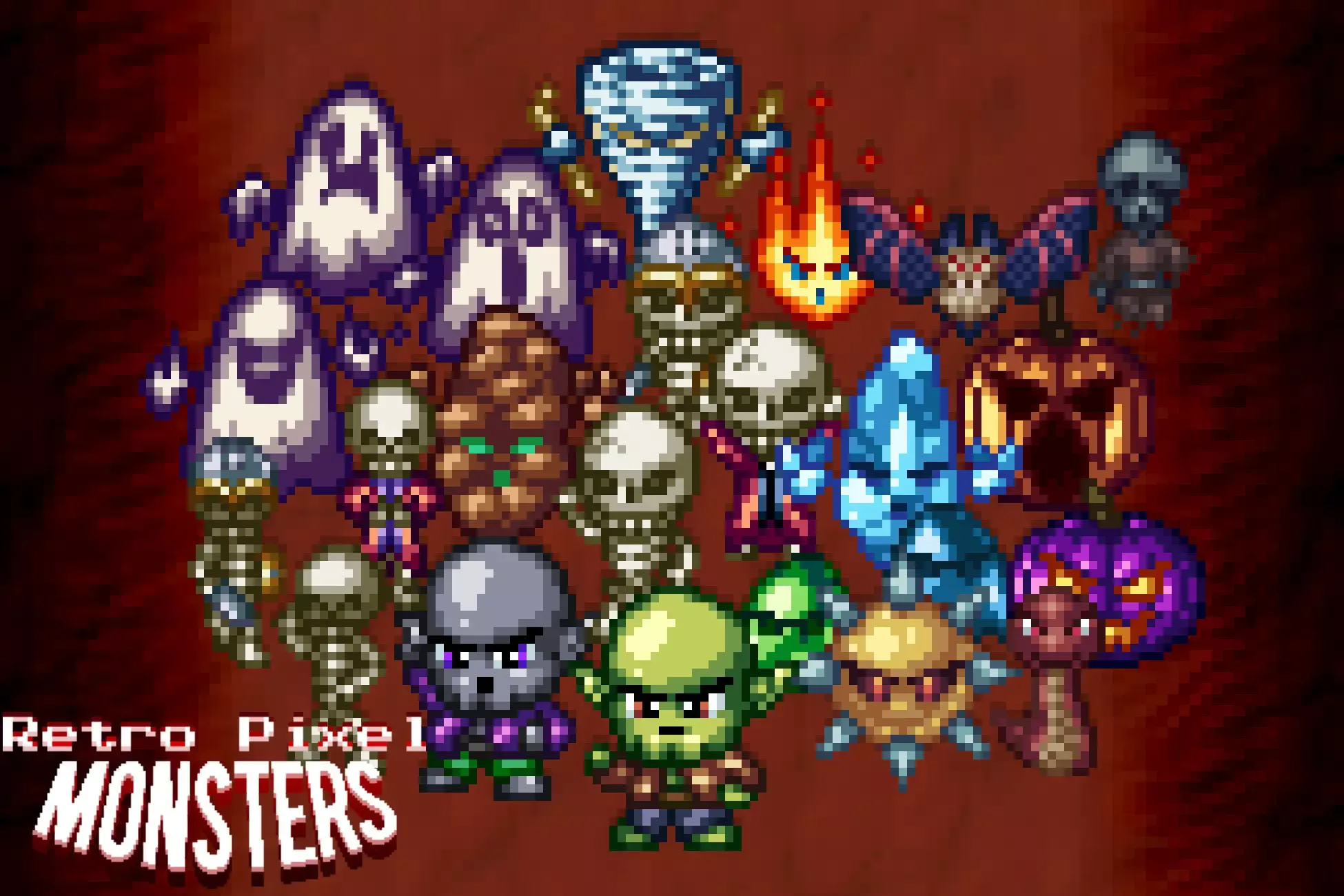 RETRO PIXEL MONSTERS - Pixel art Monster characters with complete animations and variations!
