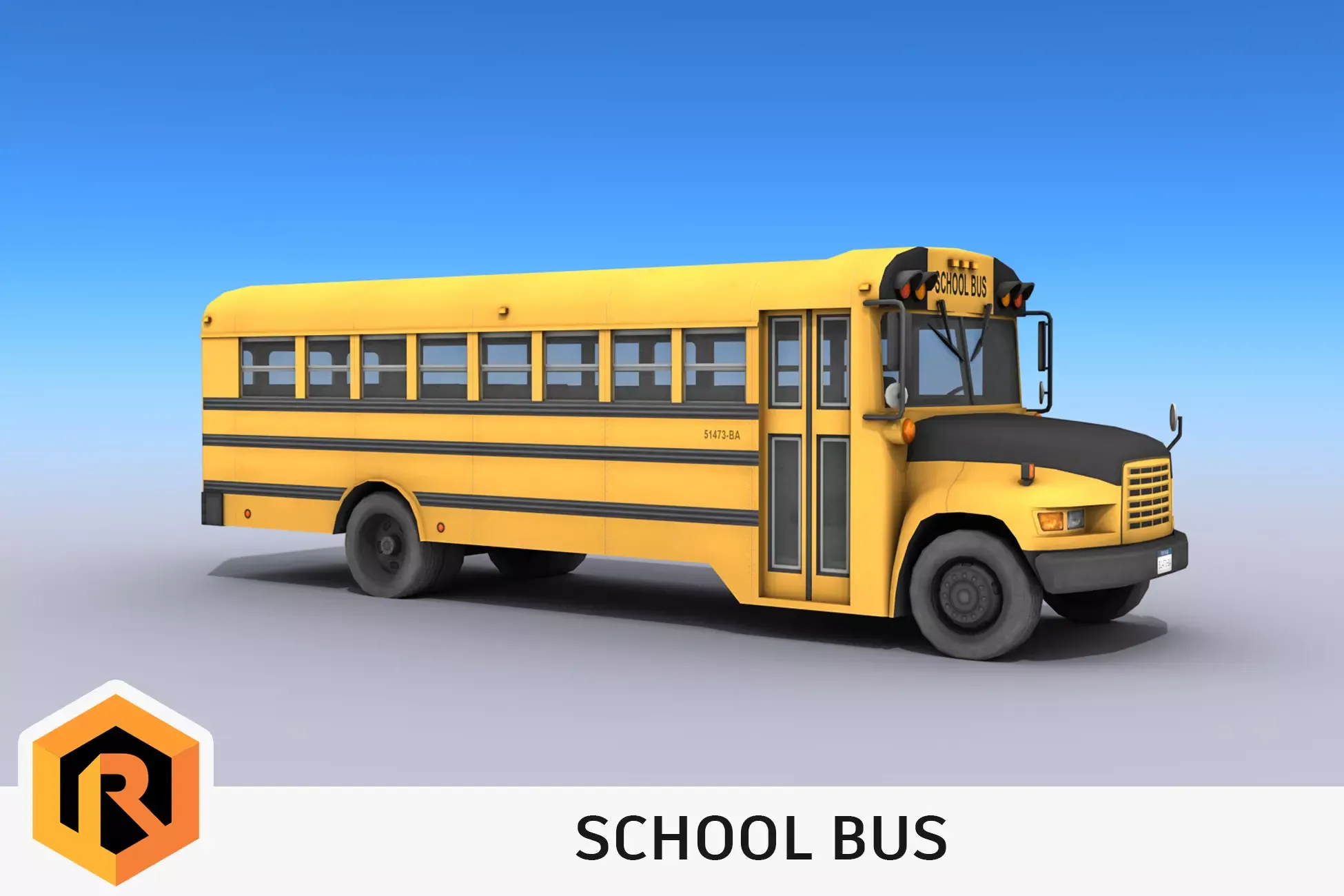 High-quality low-poly 3D model of School Bus. The interior part is also modeled but with less detail. The wheels are separate objects so you can attach the object to your favorite vehicle controller. This model is best for use in games and other VR/AR, real-time applications. It was built with attention to detail and realistic proportions with the correct geometry. We have also made every effort to ensure that the textures are as detailed as possible and made with the greatest care.
