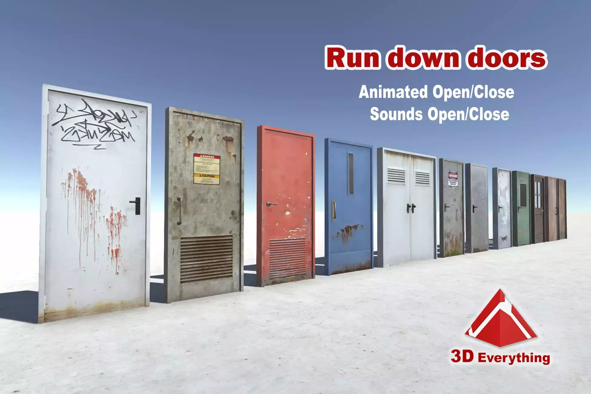 Collection of 12 low poly run down doors. There are wooden and metal doors that can be used in different scenes for games. The doors have real proportions. 10 different sounds included. All the models are low-poly to be used in games and applications. Our latest update has been tested for VR
