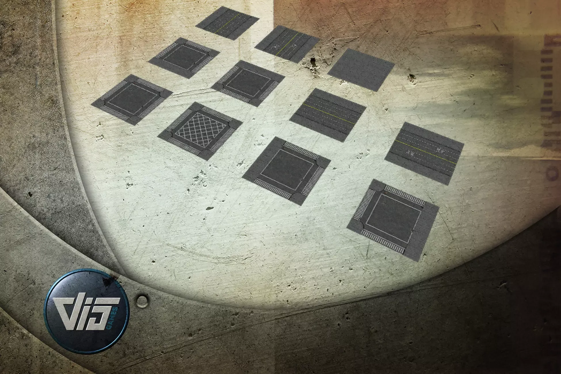 All elements are exactly 30 by 30 meters and fit perfectly together.