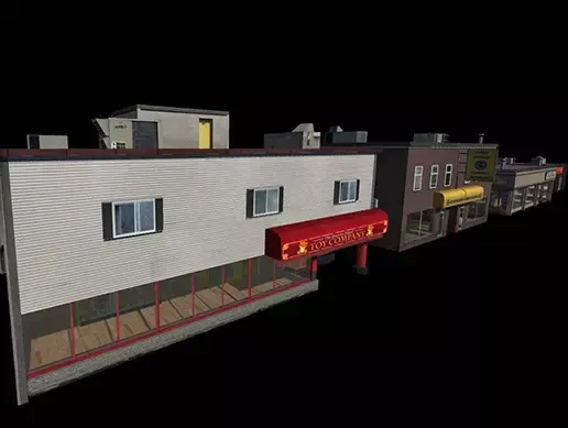 This is a set of unique store buildings you can find in a modern city environment. The front / back / sides of the buildings are distinctly modeled.