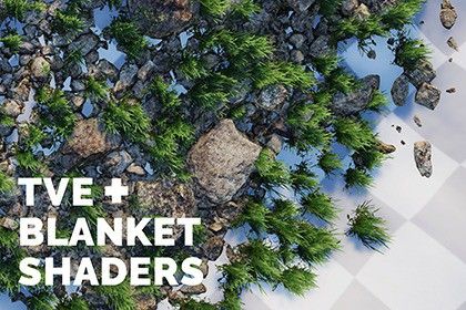 The Terrain Blanket module allows you to conform and align big patches of grass or groups of rocks, which would only work for flat surfaces, to the terrain surface and normal direction. The shaders are using the pre-baked pivots to treat each sub-mesh as an individual object, allowing you to use fewer grass objects while covering bigger areas. Or it can simply conform objects like roots to the terrain surface like a 3D mesh decal.