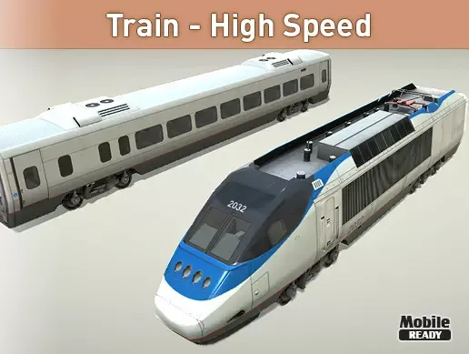 This is high quality low-poly high speed train model. Contains train engine and car models. Interiors also are included. Well suited for mobile projects.