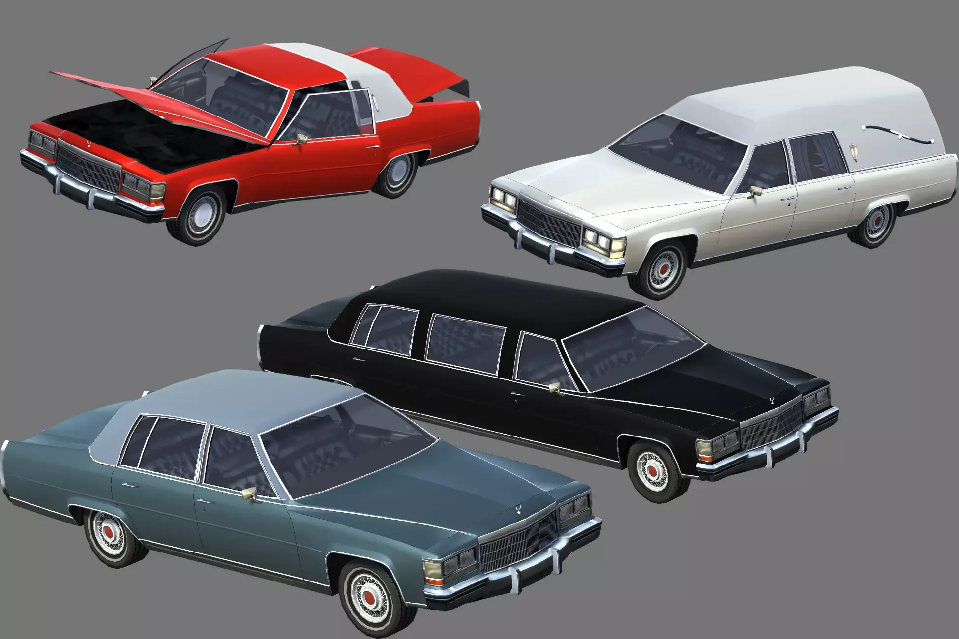 From the Urban American Assets Serie the Grandstar comes in three versions (coupe and sedan, stretch (limousine) and hearse with a simple interior, the doors, hood and trunk can be opened. It's perfect for a third person shooter game or it could be even used as a scene prop. The UAA vehicle bodies use a standardized UV map layout in a way every skin fits all vehicles from the pack. You can check our manual here: Manual These cars comes with tires and wheels (atlased texture) to offer some extra variation and compatibility with other Urban American Assets vehicles.